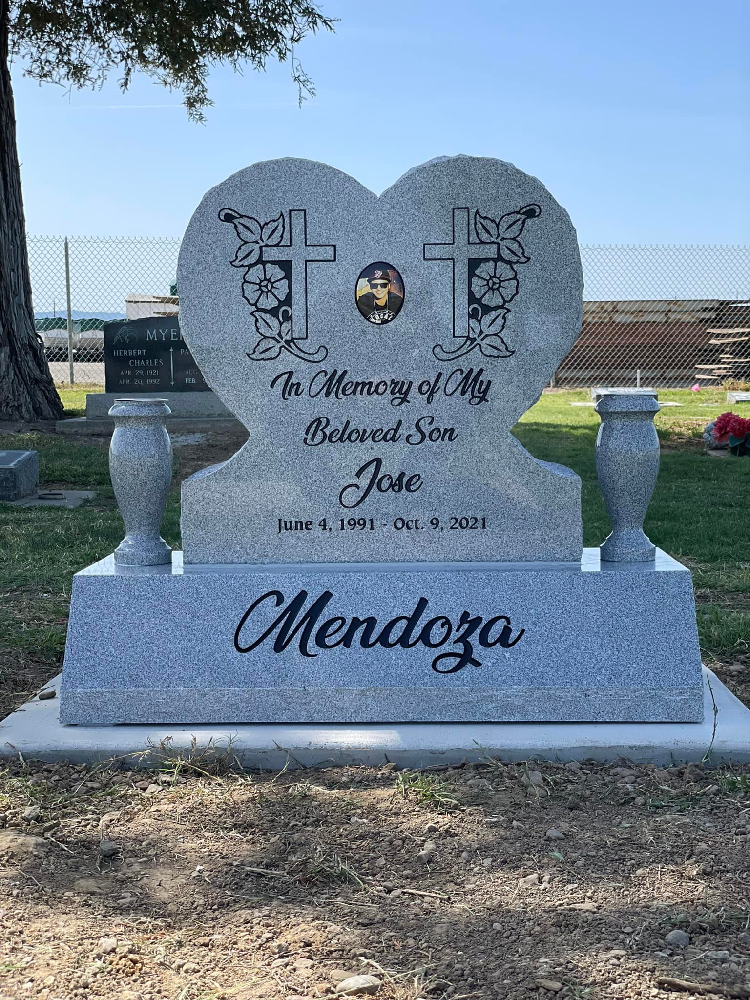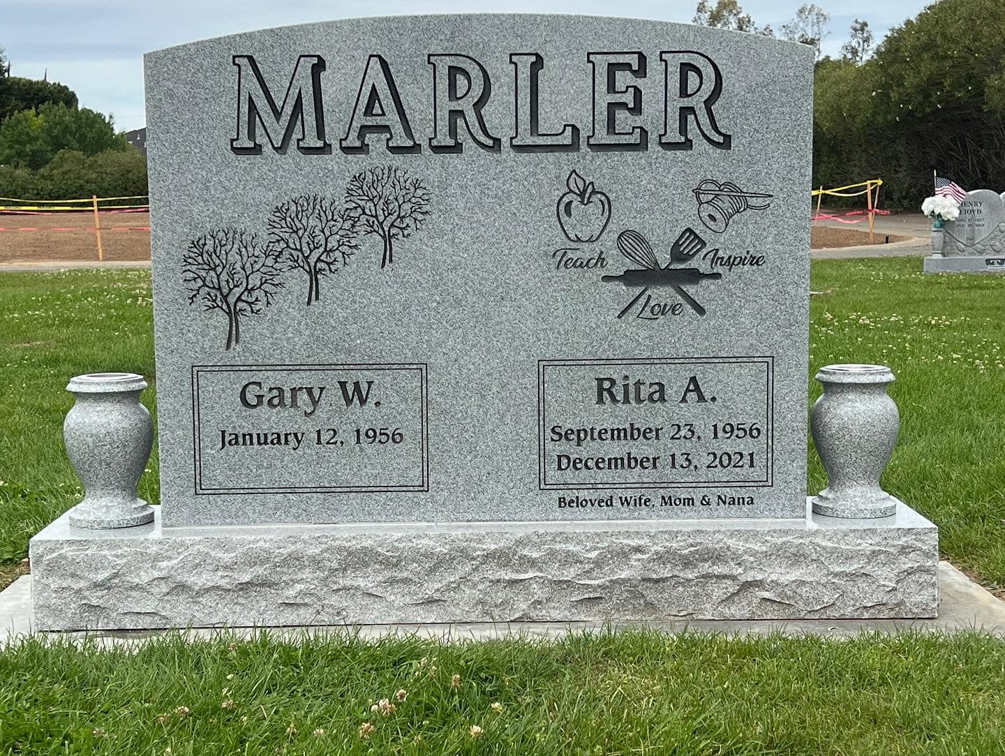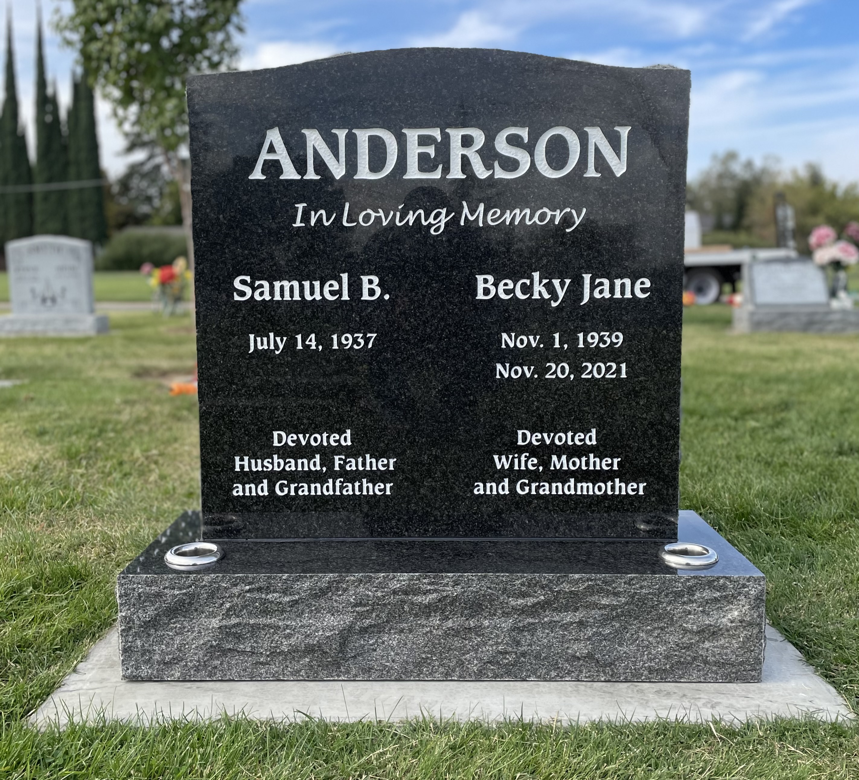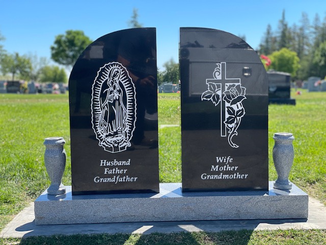 Upright Memorials set upon a granite foundation base and often have granite vases. Upright Memorials come in many different sizes and shapes including Square, Oval, Serp Top, and Heart shapes. Both front and back of an Upright Memorial can be engraved upon.