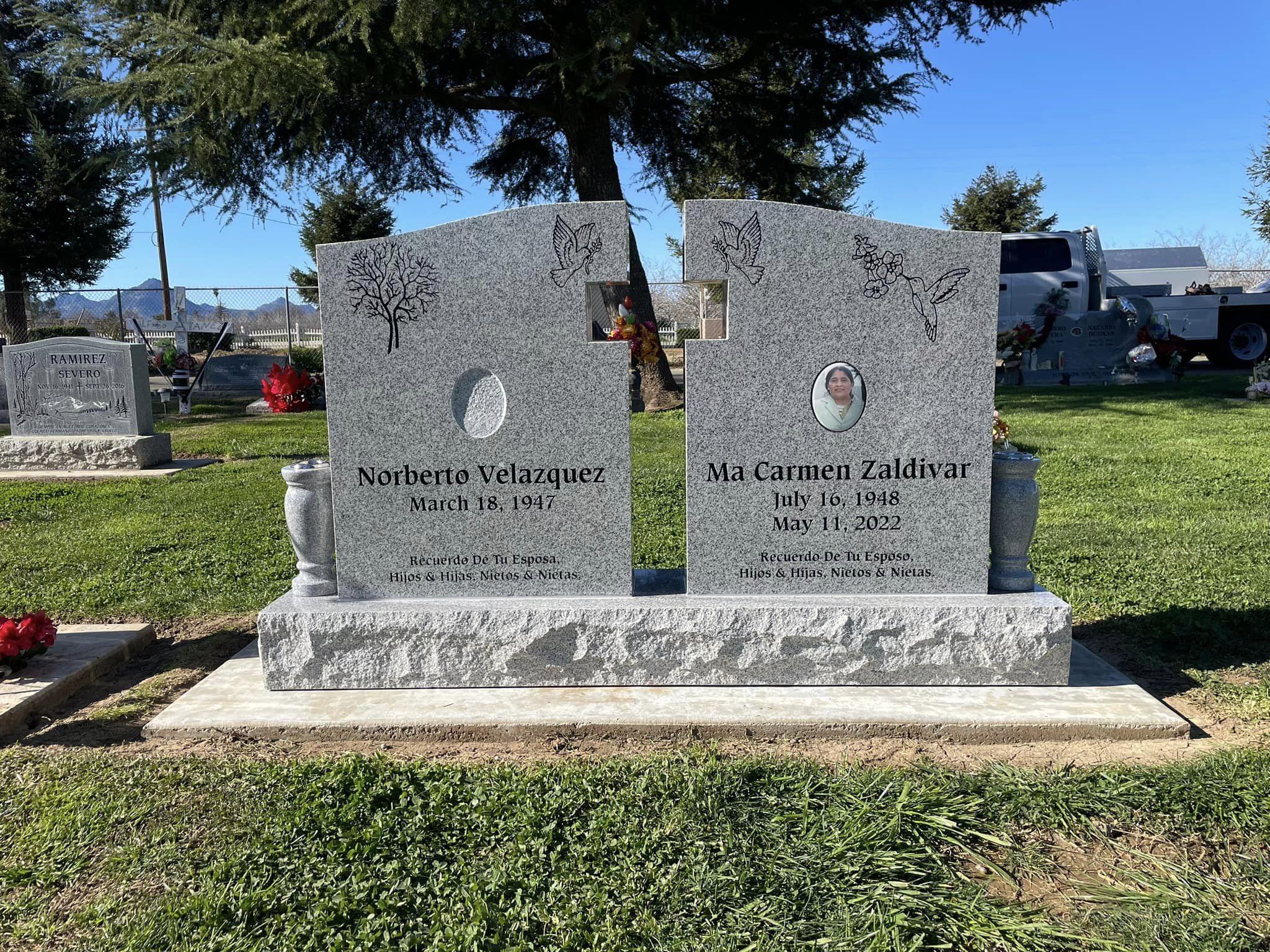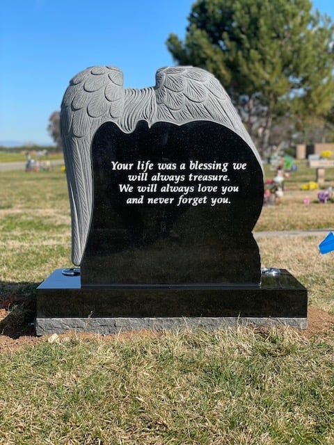 We can custom design and request any item you may want. Current Special-Order Memorials we have Completed include, hand carved Angels, Carved Guadalupe Memorials, basketball stones, Angel Benches and Cowboy hat/boot Markers. No request is too small or large to see if we can create it for you. Please reach out with any custom request you may have.