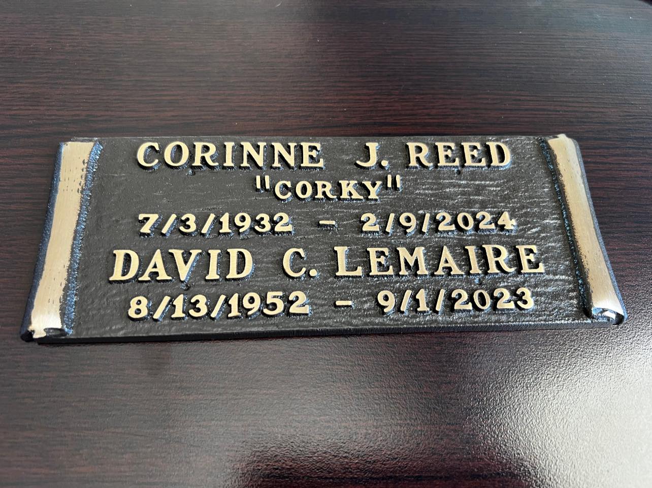 Bronze Memorials come in all sizes and can be custom requested for design and size. Most commonly Bronze Niche Plates can be seen in Rose Garden areas and Cremation Vault walls of Cemeteries. Larger bronze plaques can be used as Memorials when adhered to a Granite or Cement marker meeting Cemetery regulations and installed flush over the Gravesite or Plot.