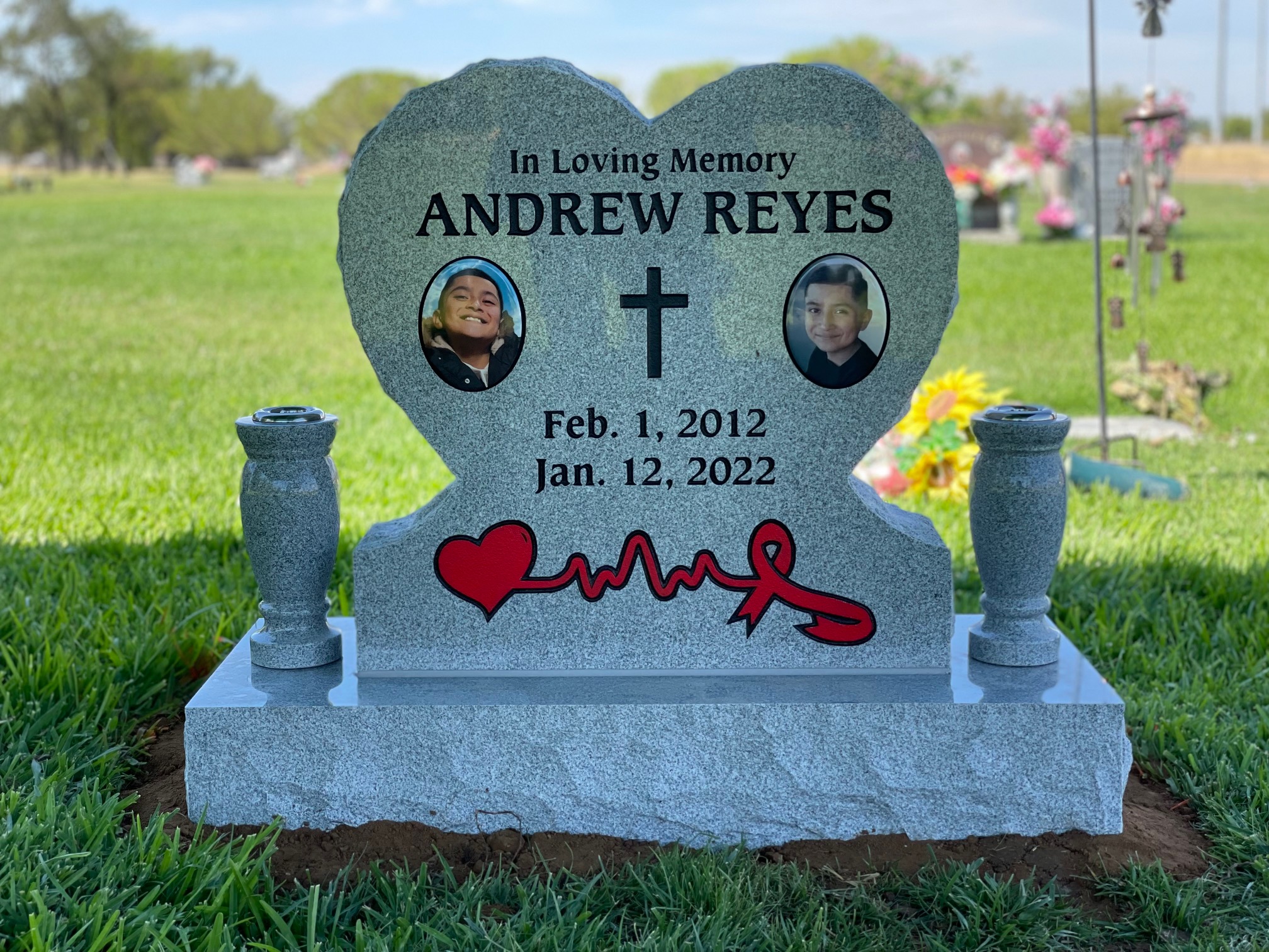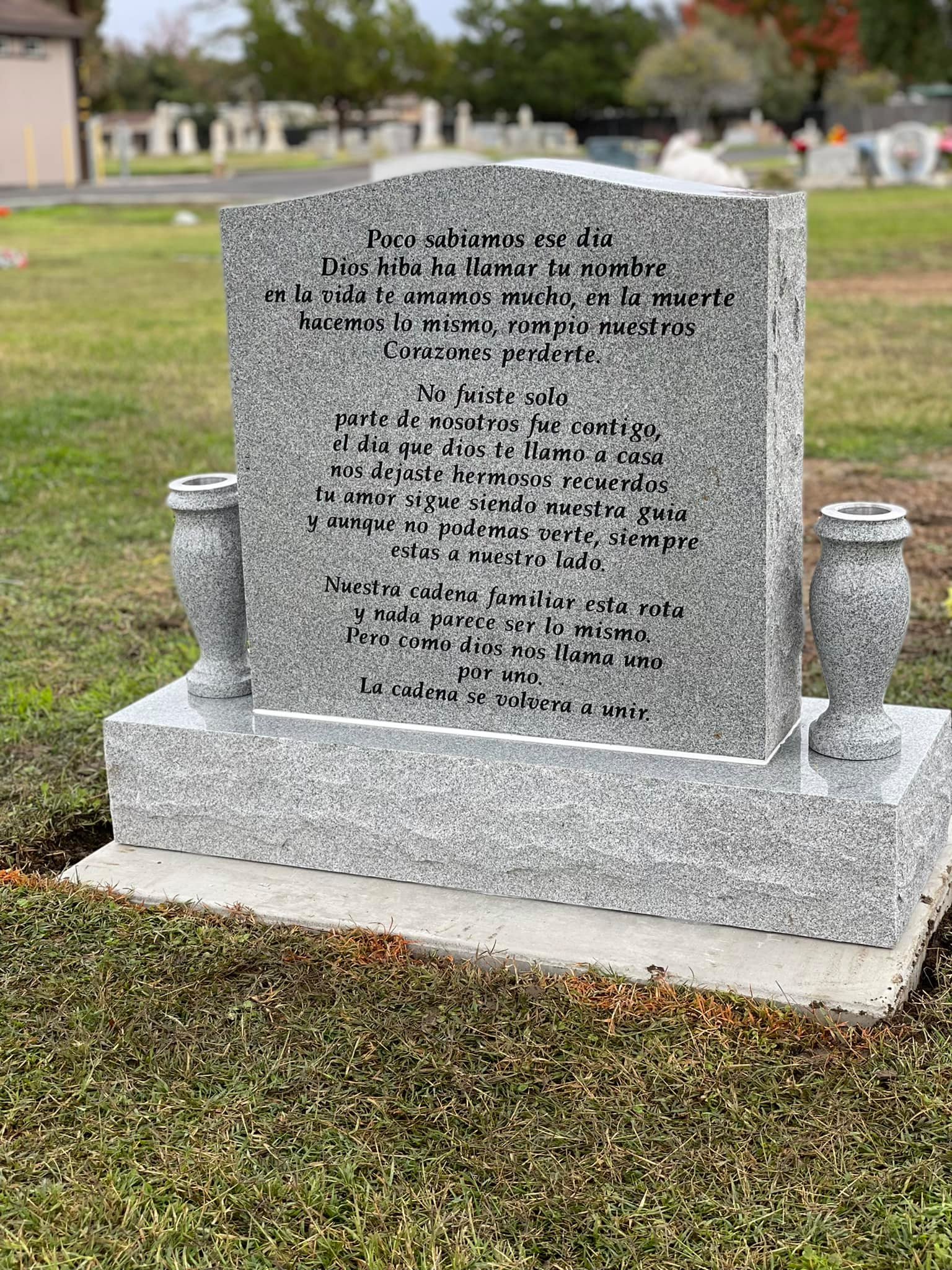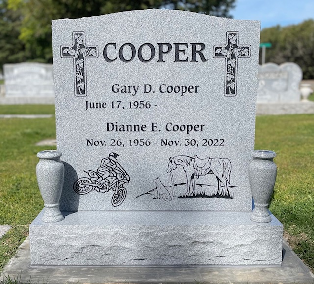 Upright Memorials set upon a granite foundation base and often have granite vases. Upright Memorials come in many different sizes and shapes including Square, Oval, Serp Top, and Heart shapes. Both front and back of an Upright Memorial can be engraved upon.