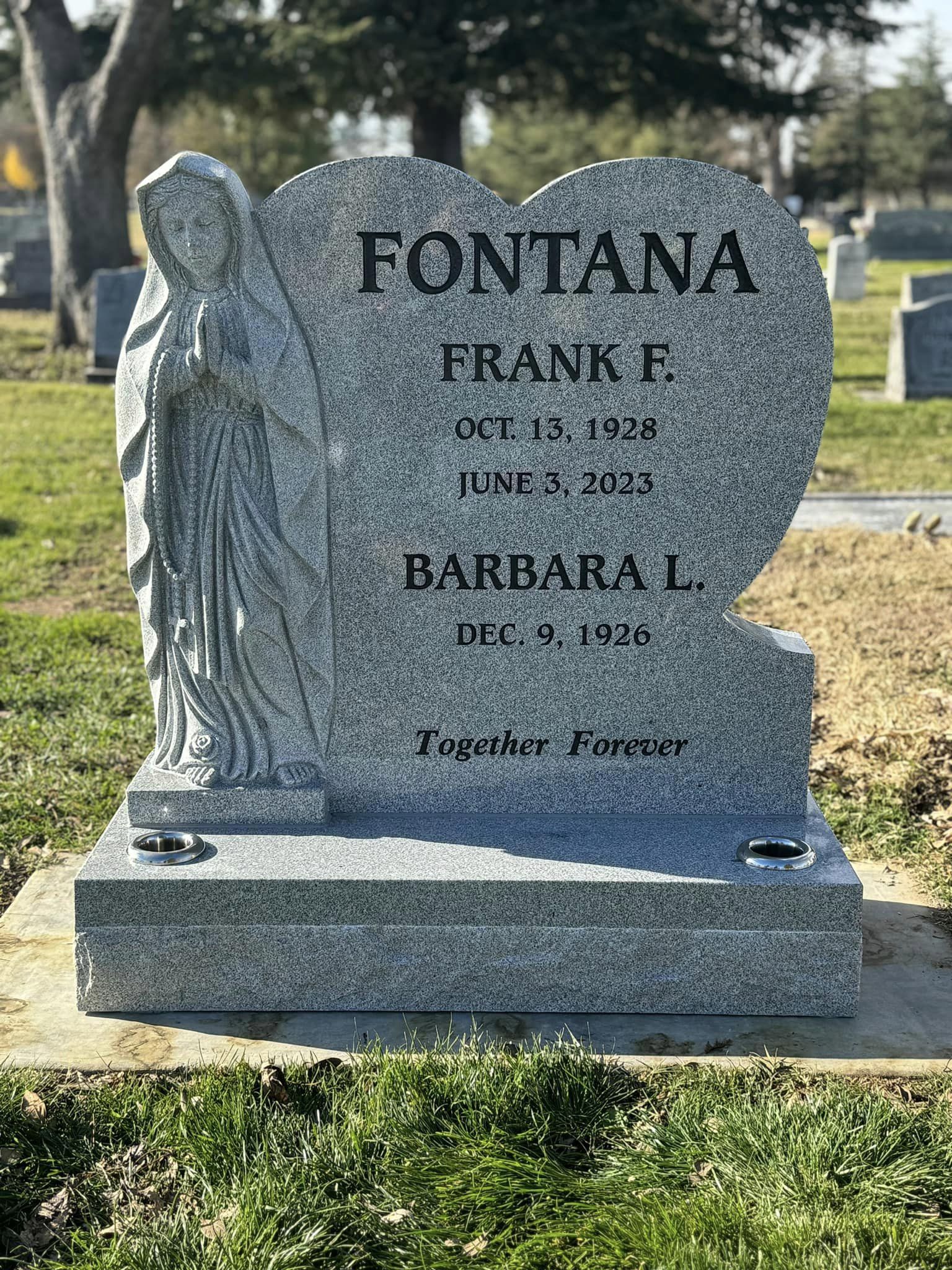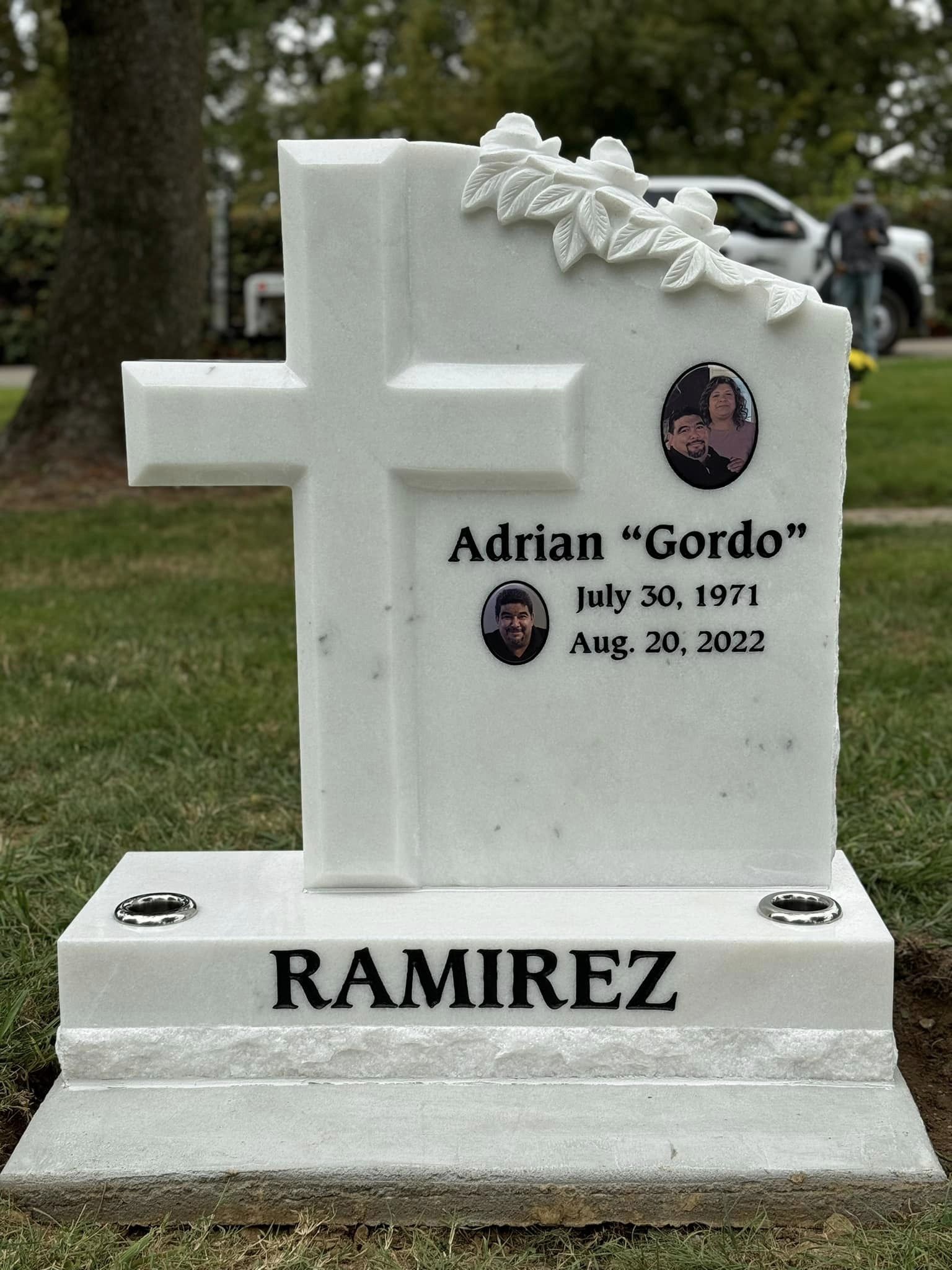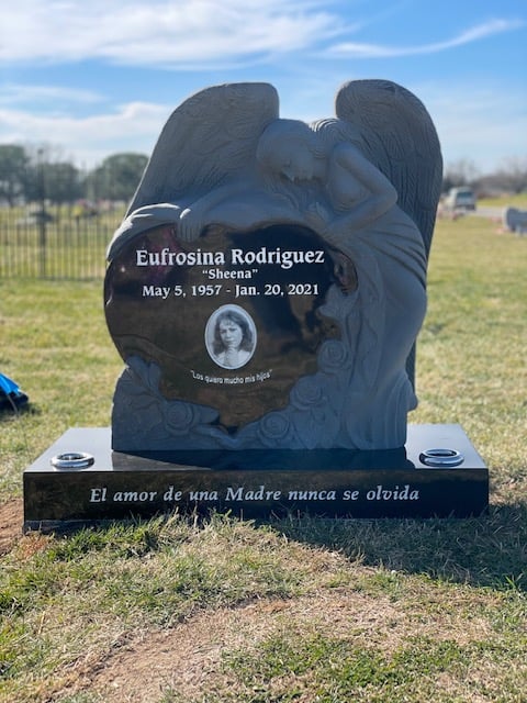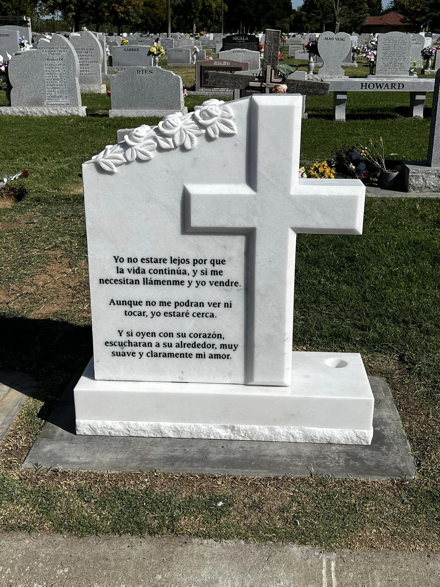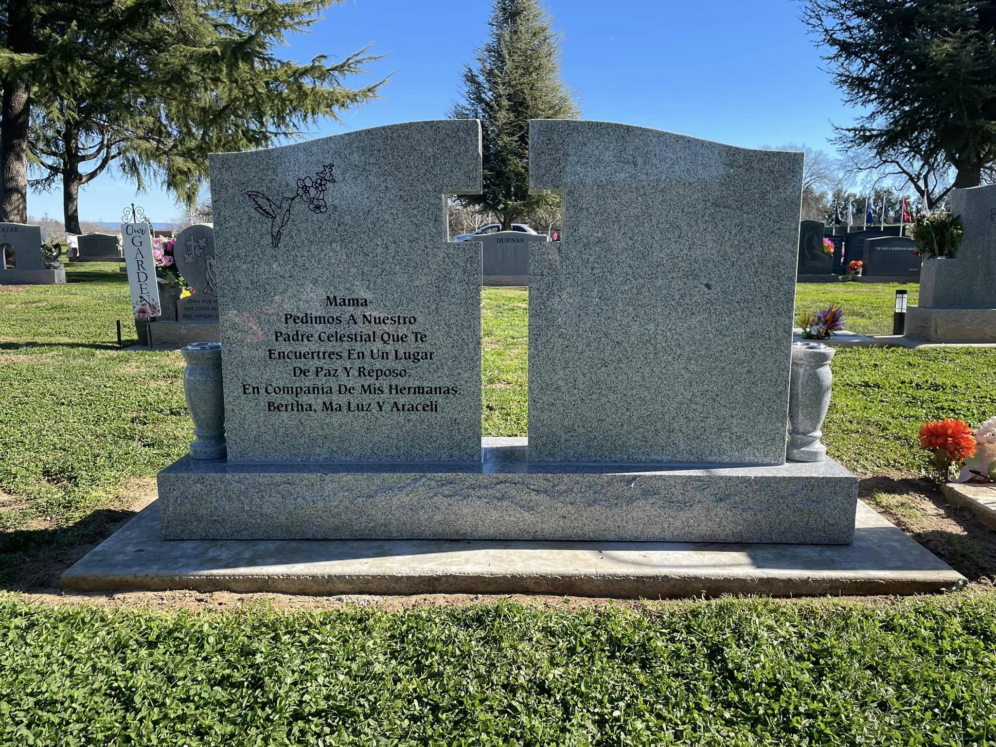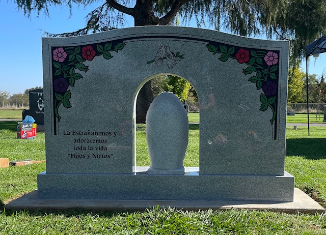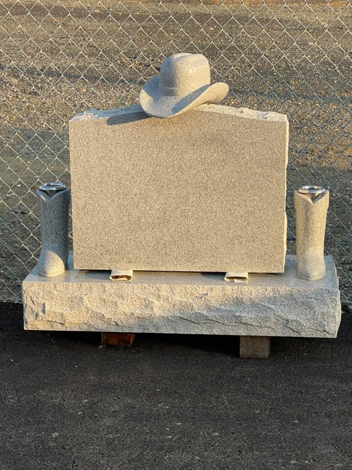 We can custom design and request any item you may want. Current Special-Order Memorials we have Completed include, hand carved Angels, Carved Guadalupe Memorials, basketball stones, Angel Benches and Cowboy hat/boot Markers. No request is too small or large to see if we can create it for you. Please reach out with any custom request you may have.